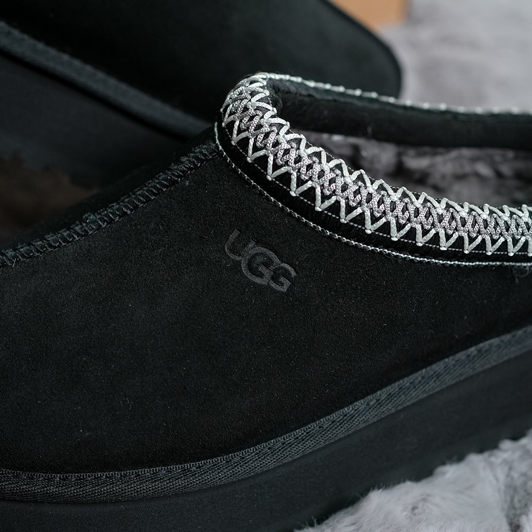 The Women's UGG Tazz II Slipper 'Black' Women's comfortable slip-on boots feature a soft sheepskin lining and lightweight sugarcane EVA sole, perfect for everyday wear indoors and out.
